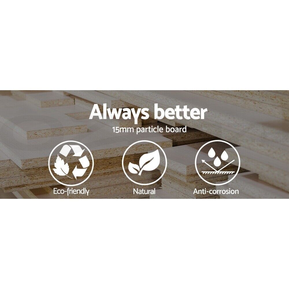 Crafted from sturdy 15mm particle board, the desk boasts a robust build capable of supporting up to 40kg on the desktop and 10kg per shelf tier. The smooth melamine finish not only adds a sophisticated touch to your workspace but also makes cleaning and maintenance a breeze. An anti-slip base ensures that your desk remains steady, no matter how intense your workday gets.