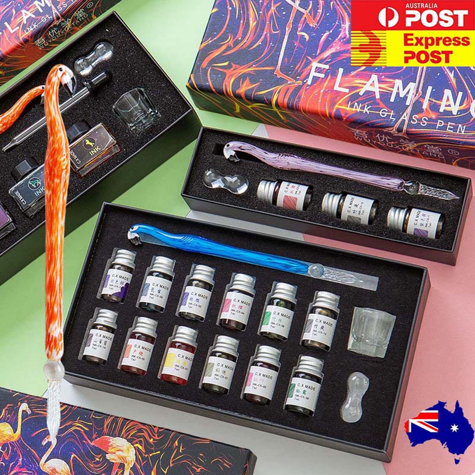 Crystal Flamingo Glass Dip Pen Ink Set Gift Pack Signature Dipping Calligraphy