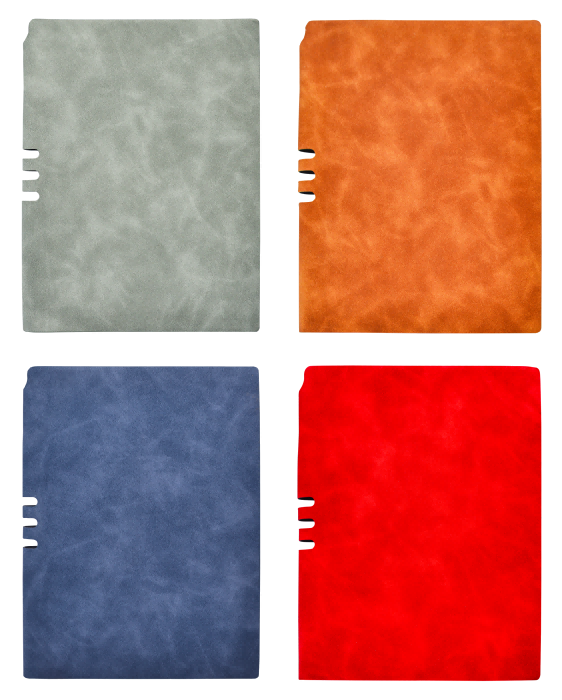This notebook isn't just any ordinary journal—it's a statement of sophistication. Encased in faux leather with a luxurious suede texture, it’s available in rich, timeless colours like ruby red, camel, smoky grey, and navy blue. Each one exudes vintage charm while delivering modern functionality, making it a perfect accessory for any setting.