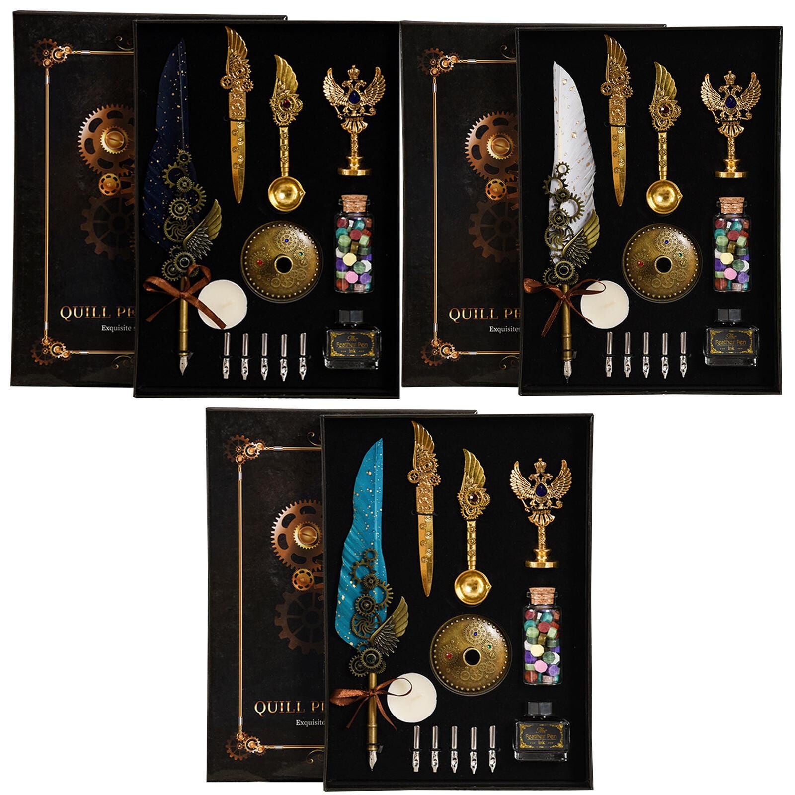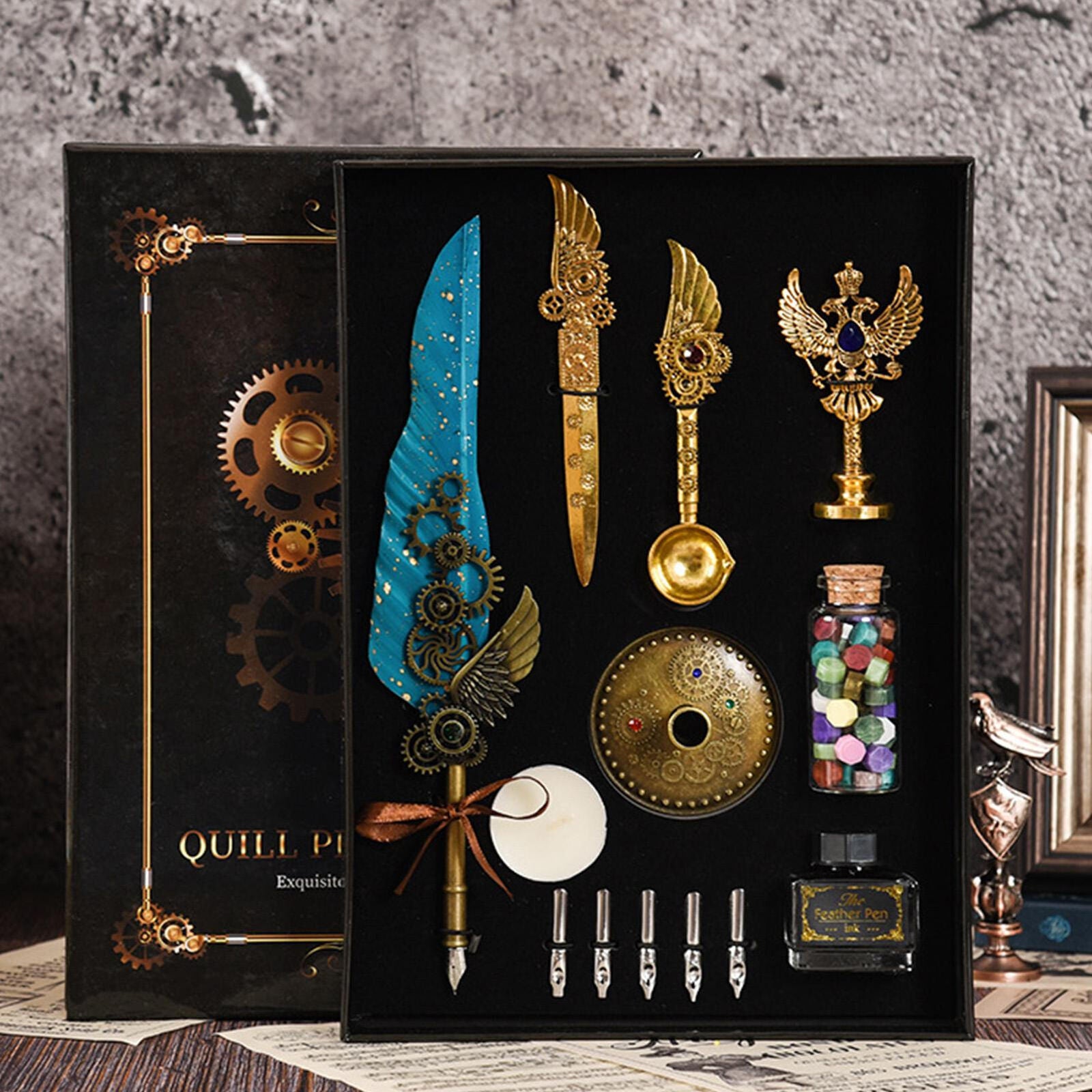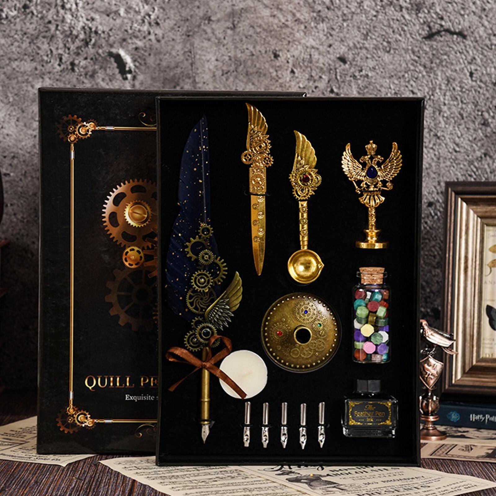 Elevate your writing experience with our meticulously crafted Pen Set Calligraphy Quill Feather Ink Set and Writing Antique Vintage Nibs. This exquisite set combines timeless elegance with modern durability, making it a perfect gift for any writing enthusiast.